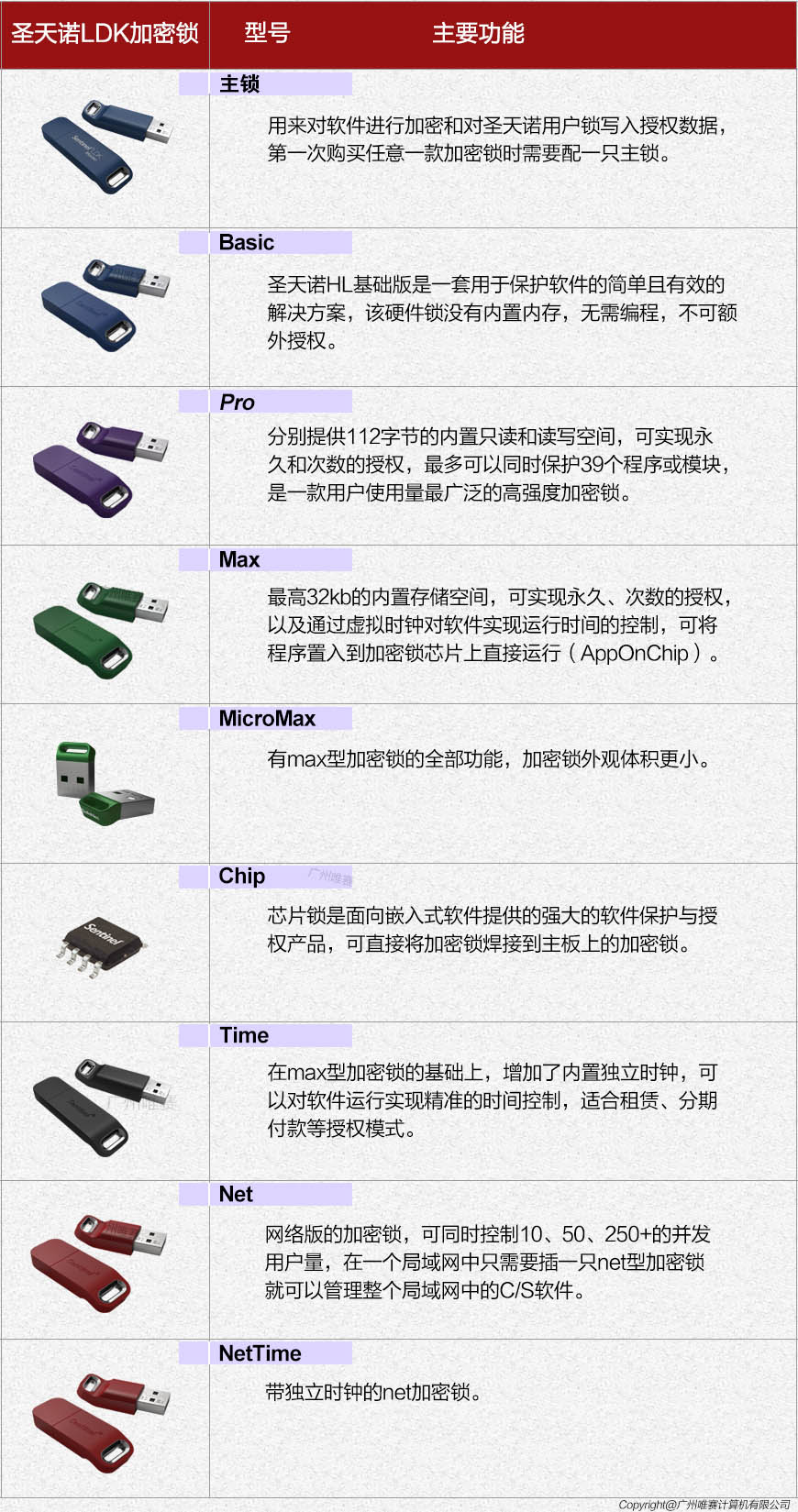 圣天諾LDK系列加密鎖是一款軟件保護與授權方案。它為軟件與智能設備開發商提供了高強度的軟件IP保護、防復制保護以及高靈活度的軟件授權方案。圣天諾LDK包括基于硬鎖、軟鎖兩種系列的保護與授權產品。它不僅能滿足在軟件保護階段上的需要,亦能滿足在后期實施授權和權限管理上的需要。無論是桌面軟件、嵌入式軟件,您都可以在圣天諾LDK授權方案中找到對應的支持。
