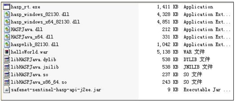 war 包加密后,產(chǎn)生的文件相對較少,此處只需要將原來移出的 jar 包和.class 文件重新加入,部署時將 safenet-sentinel-hasp-api-j2ee.jar 放入$CATALINA_HOME/lib 目錄下。