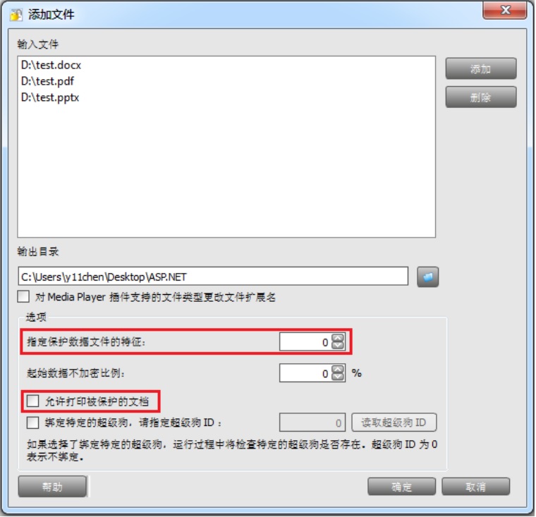 可以用指定的特征來保護(hù)您的 Office 文檔和 PDF 文檔,特征的缺省值是 0,被保護(hù)的Office 文檔和 PDF 文檔在打開時將在連接的超級狗中搜索為其指定的特征。