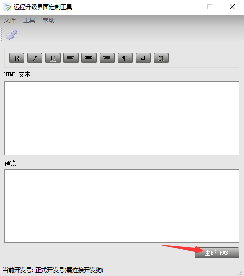 在上面菜單的工具項(xiàng),選擇【設(shè)置】,勾選【使用正式開(kāi)發(fā)號(hào)】,插上主鎖后點(diǎn)【生成RUS】