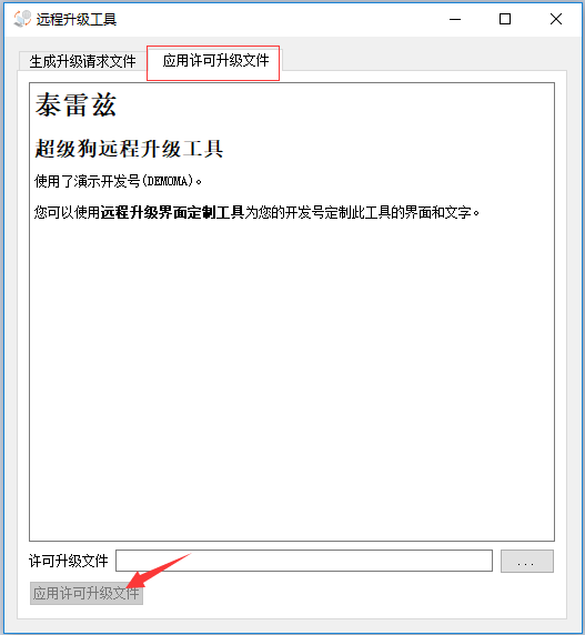 在客戶電腦上打開(kāi)之前生成的RUS軟鎖安裝工具,選擇【應(yīng)用許可升級(jí)文件】項(xiàng)